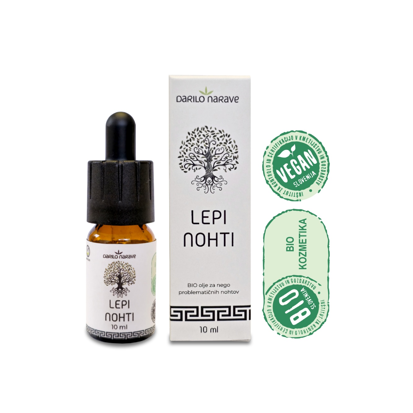 LEPI NOHTI (LIJEPI NOKTI), ulje za njegu problematičnih noktiju, 10 ml. Ulje s mastikom namijenjeno je njezi gljivičnih i lomljivih noktiju i zanoktica. Proizvod se nanosi i utrljava izravno na zahvaćene nokte i zanoktice. Preporučujemo nanošenje jedne kapi dva puta dnevno na čist nokat. Dobro protresti prije upotrebe. Budući da je proizvod potpuno prirodan i organski, ne sadrži alkohol, parabene niti dodane konzervanse, pogodan je i za djecu i trudnice.